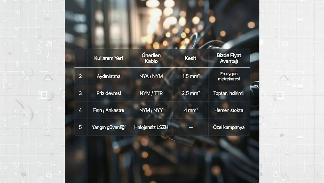 | Kullanım Yeri | Önerilen Kablo | Kesit | Bizde Fiyat Avantajı |